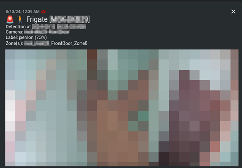 Frigate-Notify allows for certain configuration values to be customized using Golang text templates. Templates are currently supported on alert titles, alert messages, and HTTP headers.